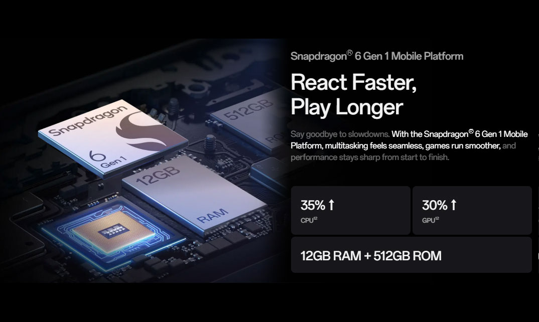 - Chip: Qualcomm Snapdragon® 6 Gen 1 Mobile Platform
